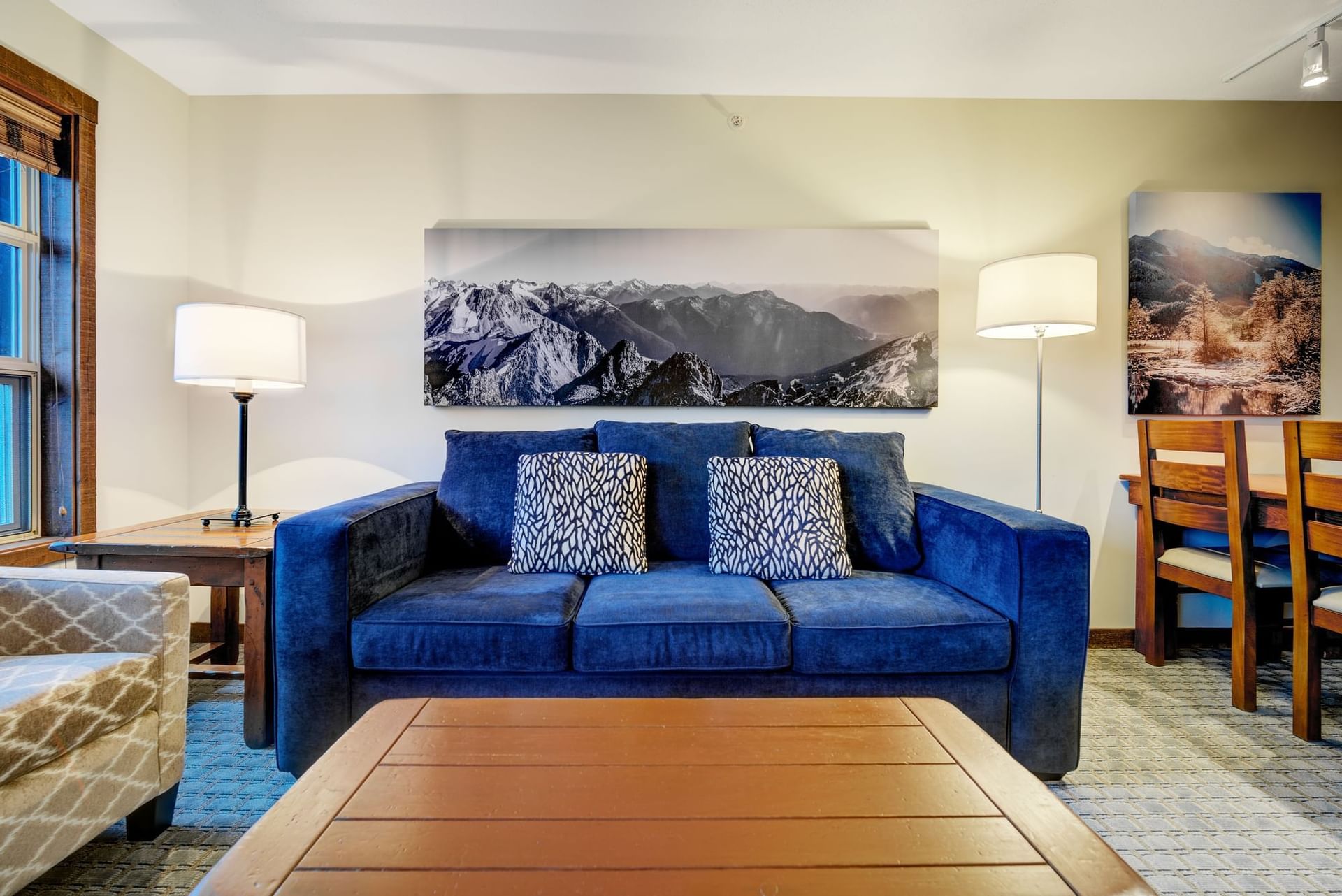 Ideal for couples, this romantic suite offers a separate bedroom and living space with incredible mountain views